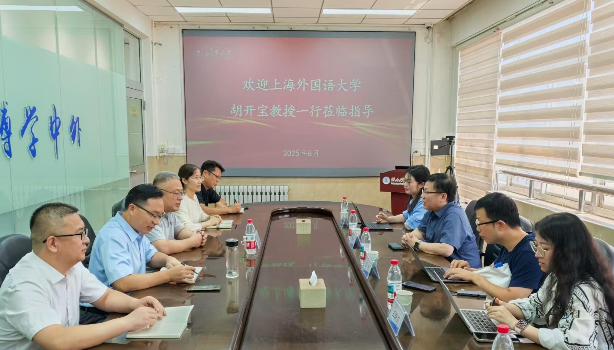 8月18日下午,上海外国语大学校长助理兼上海外国语大学语言科学研究院院长胡开宝教授一行莅临我院开展学术交流活动。济南大学党委常委、副校长黄加栋,以及麻豆av