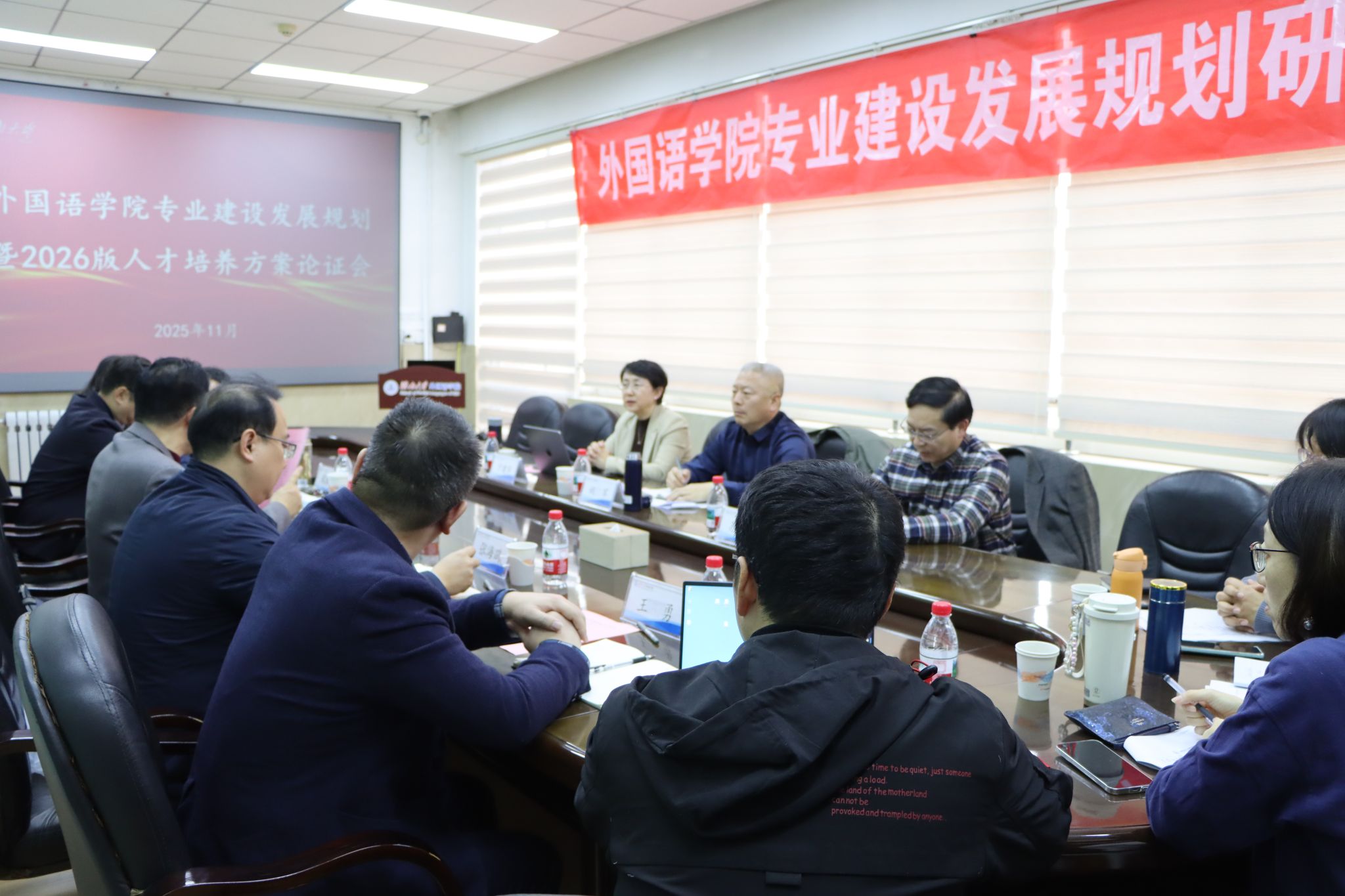 随后,宋庆伟介绍了学院基本情况和各专业建设发展现状。英语、日语、法语系主任分别汇报了人才培养方案思路和修改内容,致力于将人工智能、语言大数据等前沿技术及区域国别研究深度融入传统培养模式,打造应用型、复合型战略人才。在具体举措上,英语专业计划围绕“英语+大数据”与“英语+区域国别”两个新方向,日语专业着力建设“日语+人工智能”方向,法语专业则依托非洲研究中心发展“法语+区域国别”特色,并系统构建相应的人才培养方案。