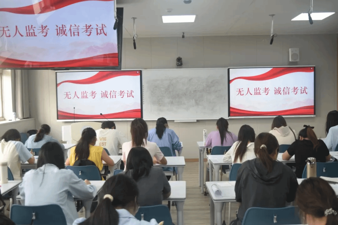 考场践诚,涵养自律品格。学院团委开展了“无人监考,诚信考试”活动,考场内没有监考老师的巡视,同学们全神贯注答题,考场秩序井然、纪律良好,大家在“无人监考”的考场中考出了诚信与自信。