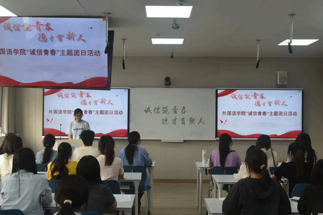 团委在1教503教室组织开展了“诚信筑青春,德才育新人”主题团日活动。